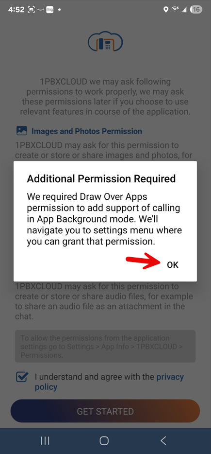 - Once installed, you will be prompted to open it. Tap on “Get started”